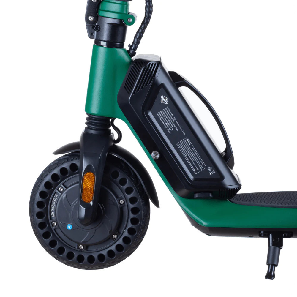 A dupla rugózással ellátott kerekei miatt az utazás rendkívül sima és kényelmes lesz, a tömör kerekek pedig segítenek a defektek által okozott kellemetlenségek elkerülésében. A fékrendszer nagyon hatékony, elöl motorfék segíti a megállást, hátul pedig egy tárcsafék.